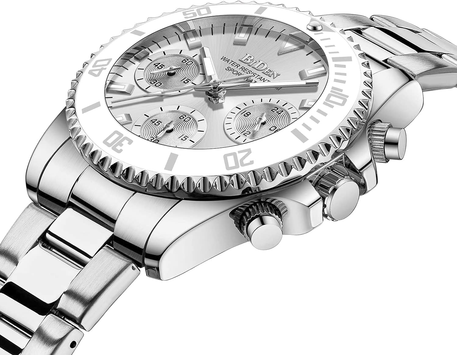 FANMIS Women Elegant Chronograph Rotatable Bezel Mineral Glass Luminous Watch Stainless Steel Waterproof Date Analog Quartz Watch Fashion Business Dress Wrist Watch