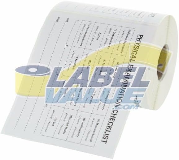 Veterinary Physical Exam Checklist Labels – 4” x 3.25”, 250 Labels/Roll, Perforated Labels | 16 Main Areas of Veterinary Physical Examination | LabelValue Brand