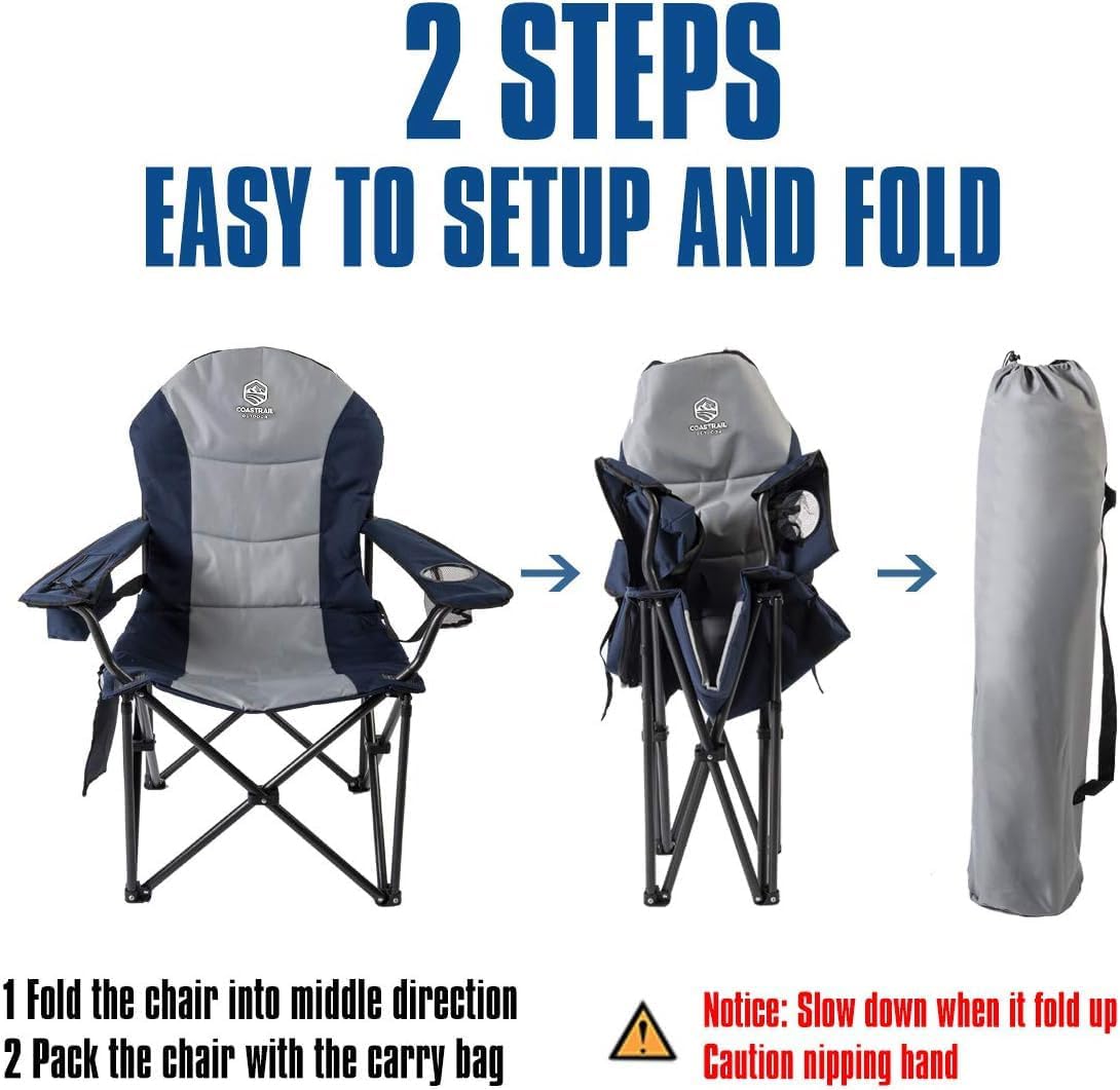 ADJUSTABLE LUMBAR SUPPORT: The backrest of the outdoor camping chair has an alignment belt that can be adjusted as needed. Ergonomic design can support your waist and make you enjoy luxury and comfort.
