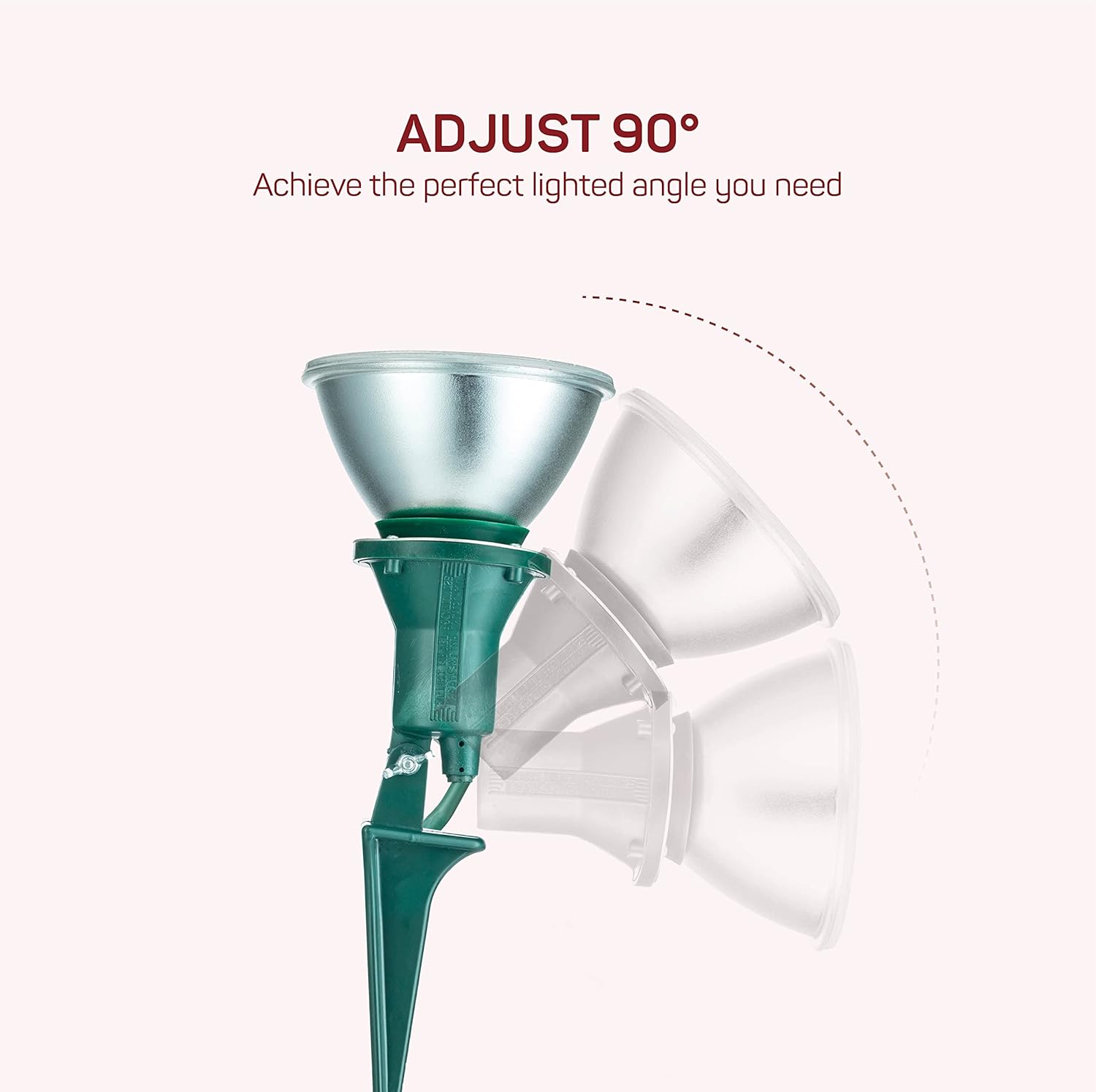 VERSATILE OUTDOOR USE : Swivels up to 80 degrees using the wing nut to light walkway paths, driveways, illuminates gardens, landscaping, holiday yard decorations, and more; green floodlight blends into landscape.