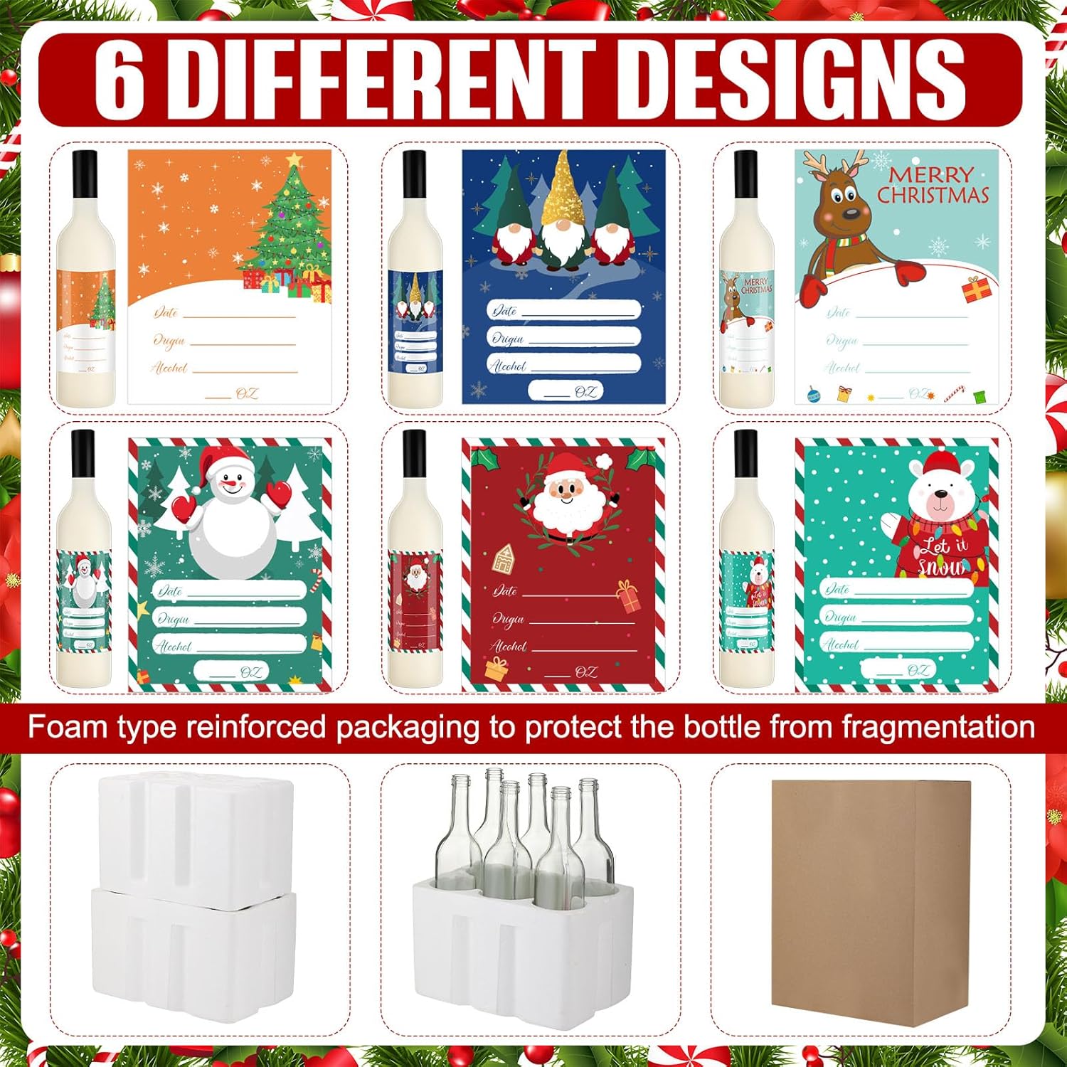 Packing List: the package contains 6 pcs 750ml coquito bottles, each with a unique Christmas pattern; 12 PVC shrink capsules, 6 cork lids, 1 funnel, 12 writable labels and a bundle of twine; Sufficient quantity and complete accessories, meet your daily and replacement needs