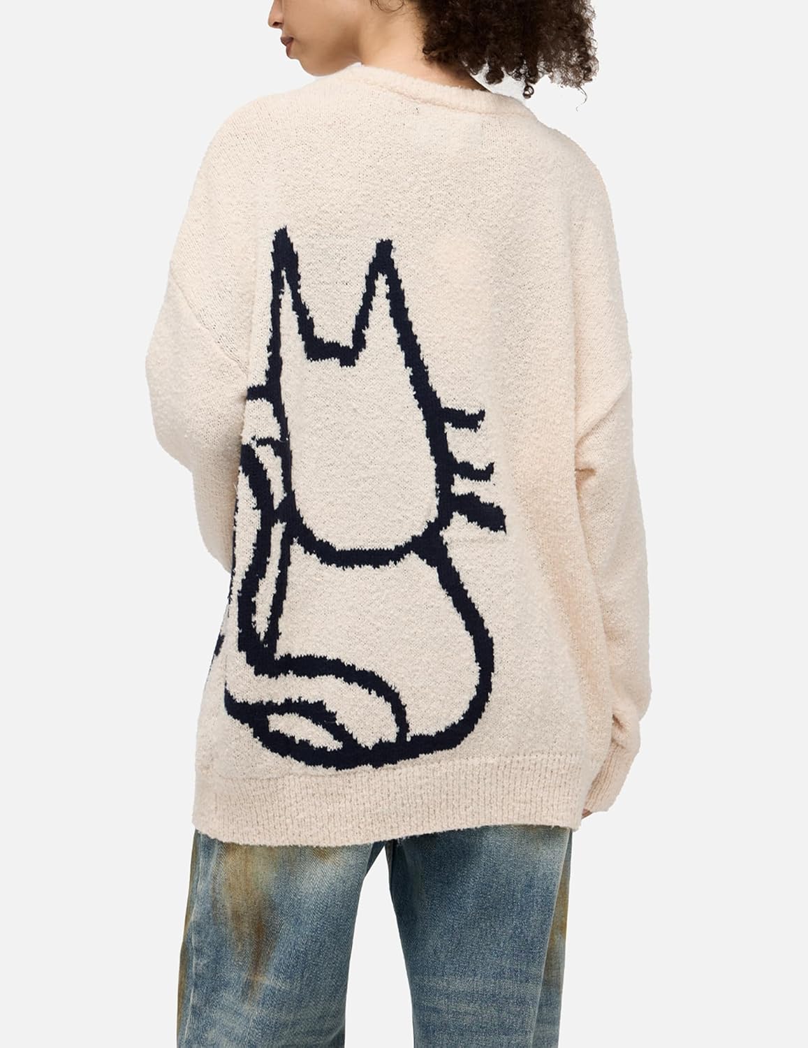 Aelfric Eden Women’s Pullover Sweater Hand Drawn Cat Graphic Printed Oversized Sweater Fall Winter Fashion Couple Tops