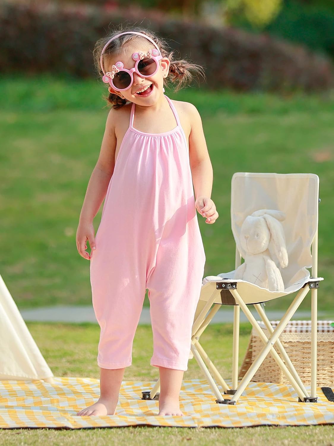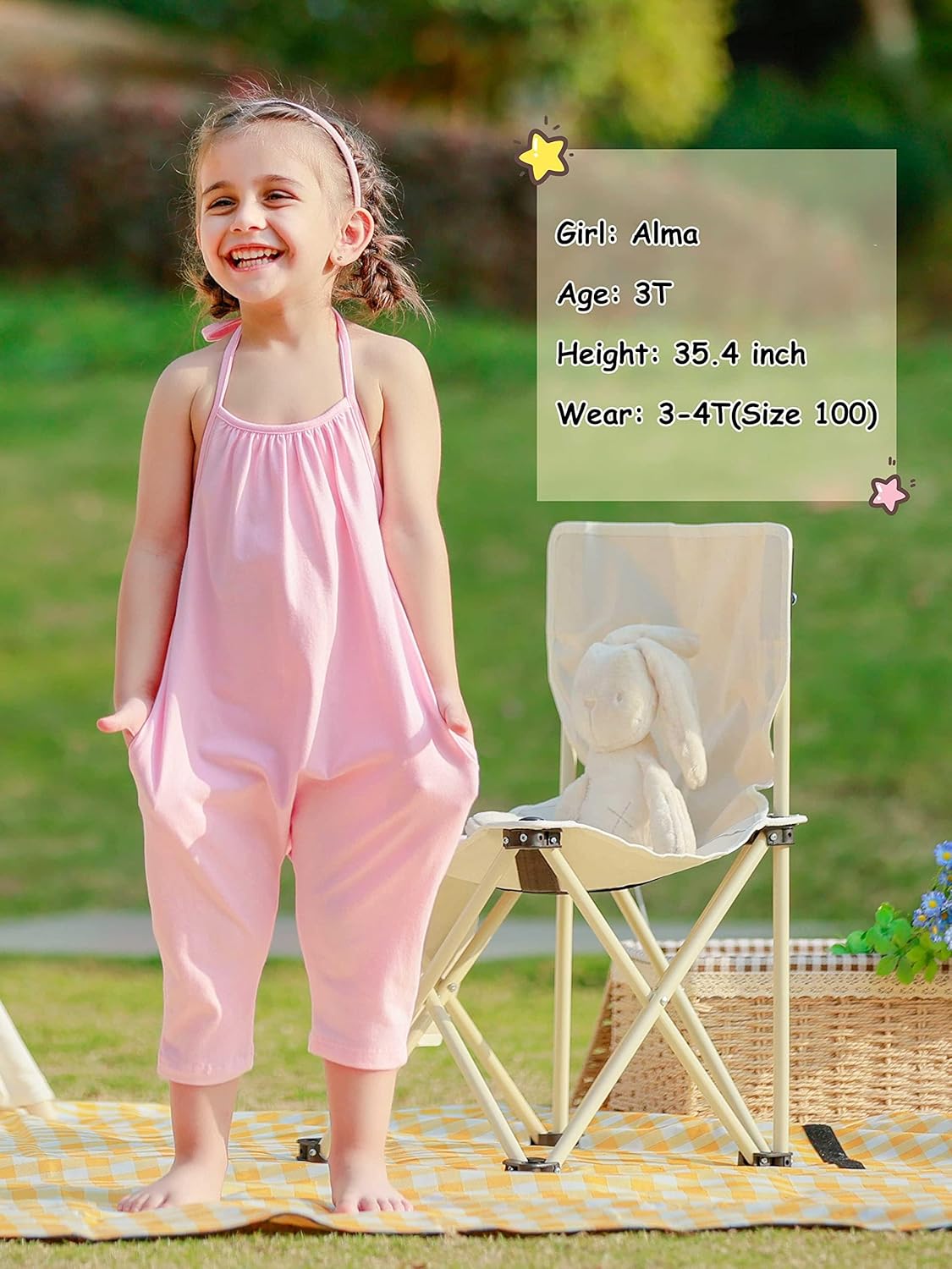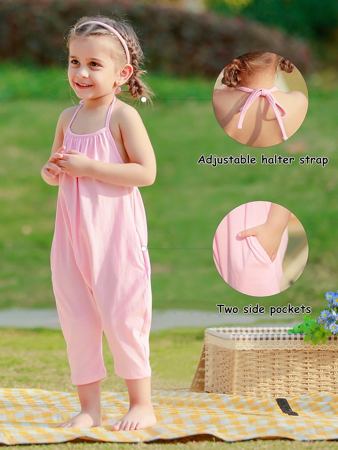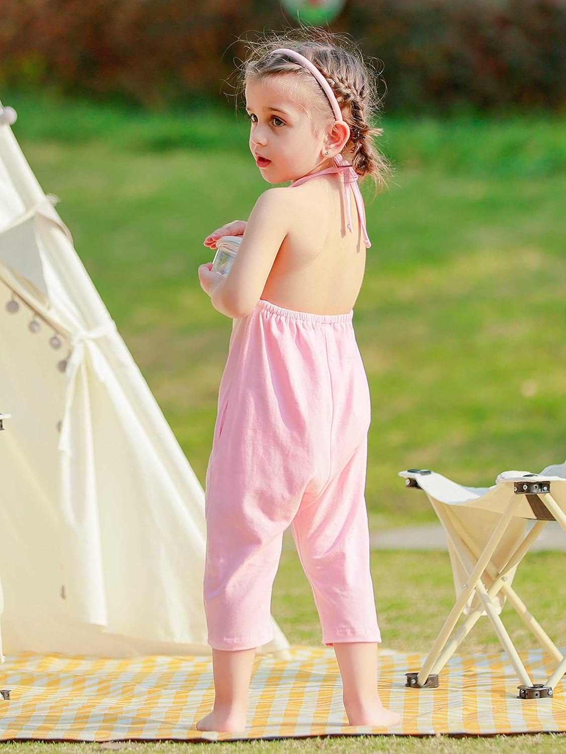 Backless Strap Slouch Jumpsuit for Toddler Girls Cute Harem Halter Romper Pants with Pockets