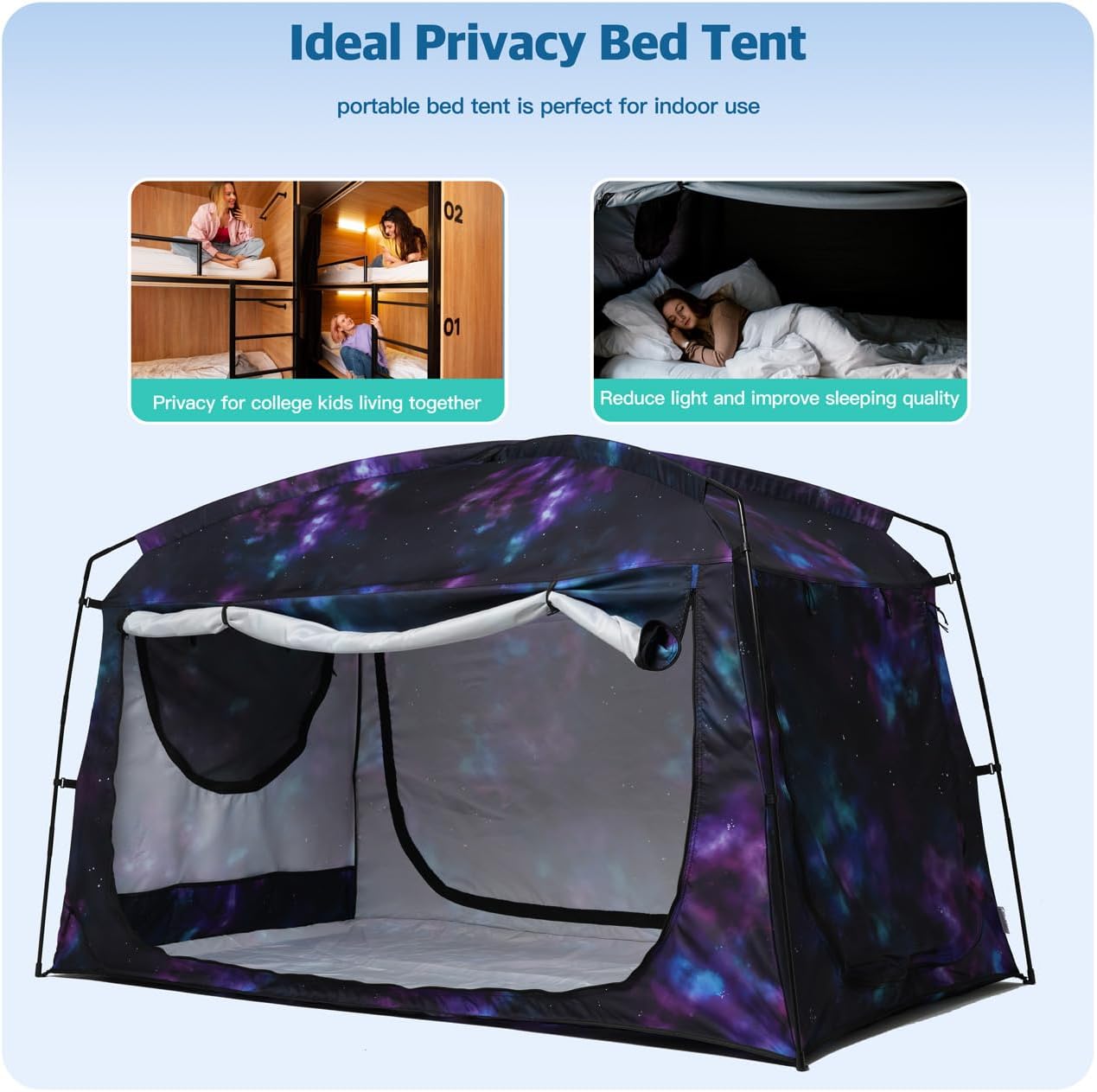 Bed Tent,Portable Privacy Sleeping Bed Canopy,Blackout 90% Drapes for Kids and Adult,Indoor Space Tent with Breathable Large Mesh Windows