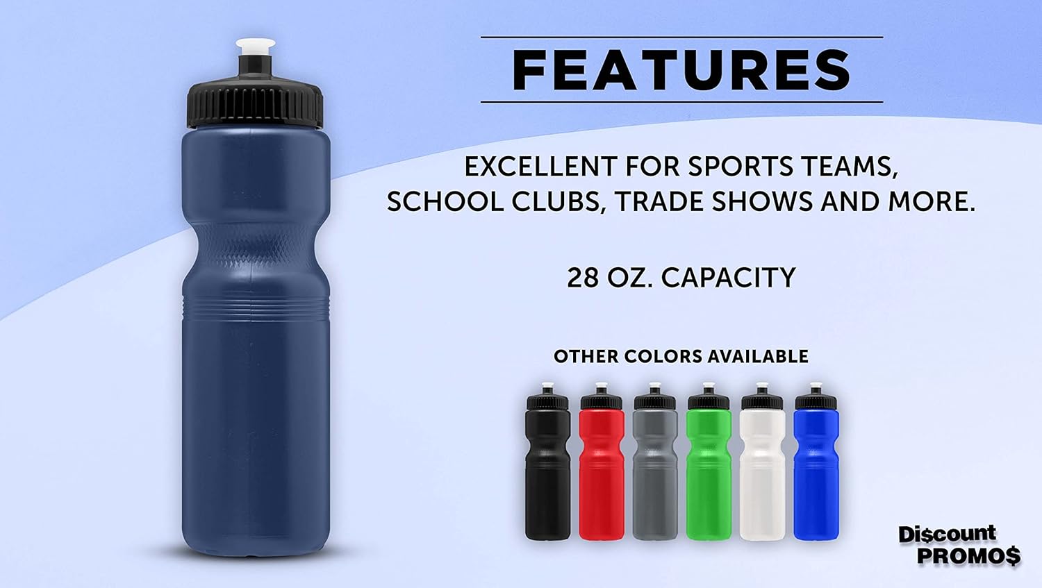 Be the first to review “DISCOUNT PROMOS 28 oz. Push Cap Plastic Water Bottles Set of 6, Bulk Pack – Perfect for Gym, Hiking, Camping, Outdoor Sports – Navy Blue”