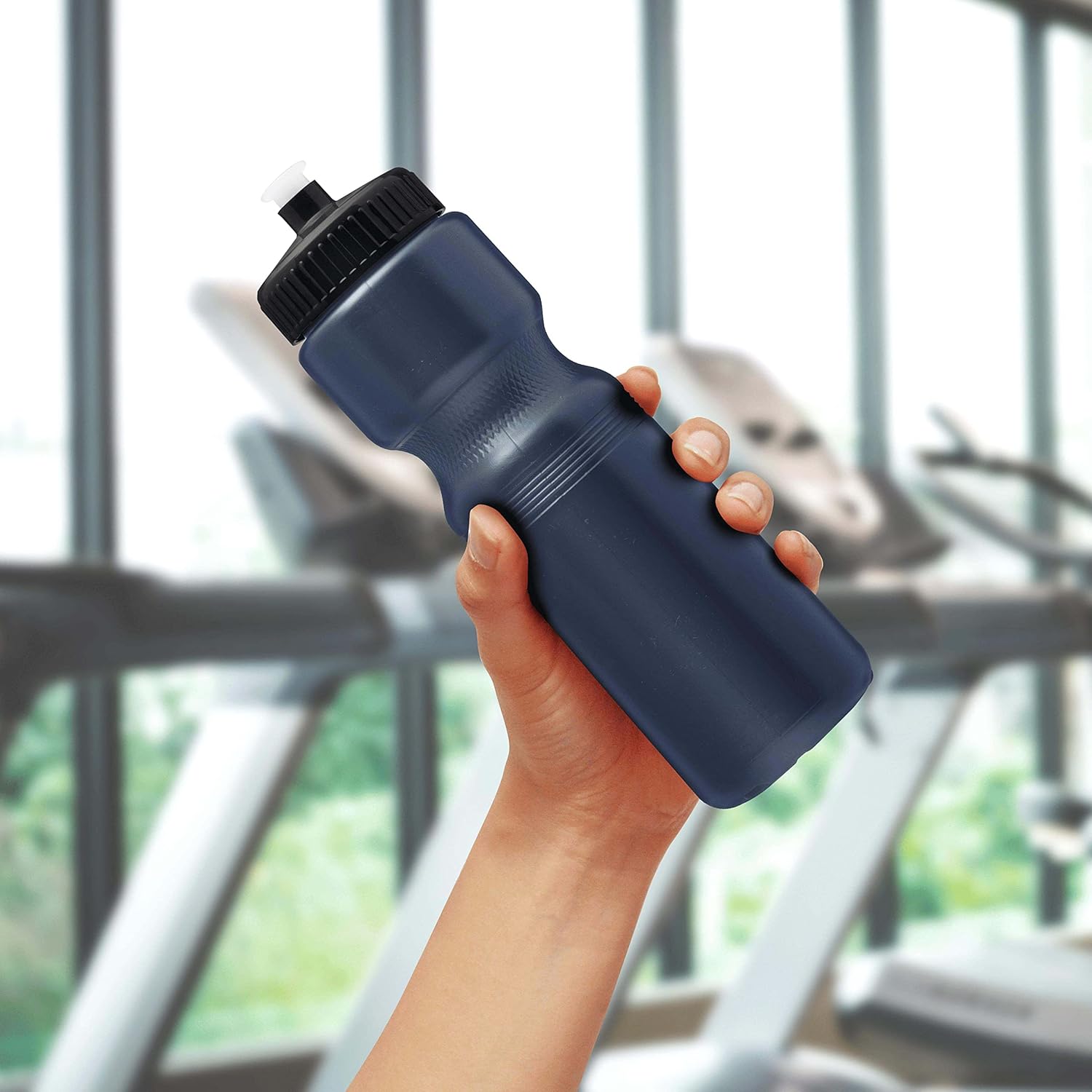 DISCOUNT PROMOS 28 oz. Push Cap Plastic Water Bottles Set of 6, Bulk Pack – Perfect for Gym, Hiking, Camping, Outdoor Sports – Navy Blue