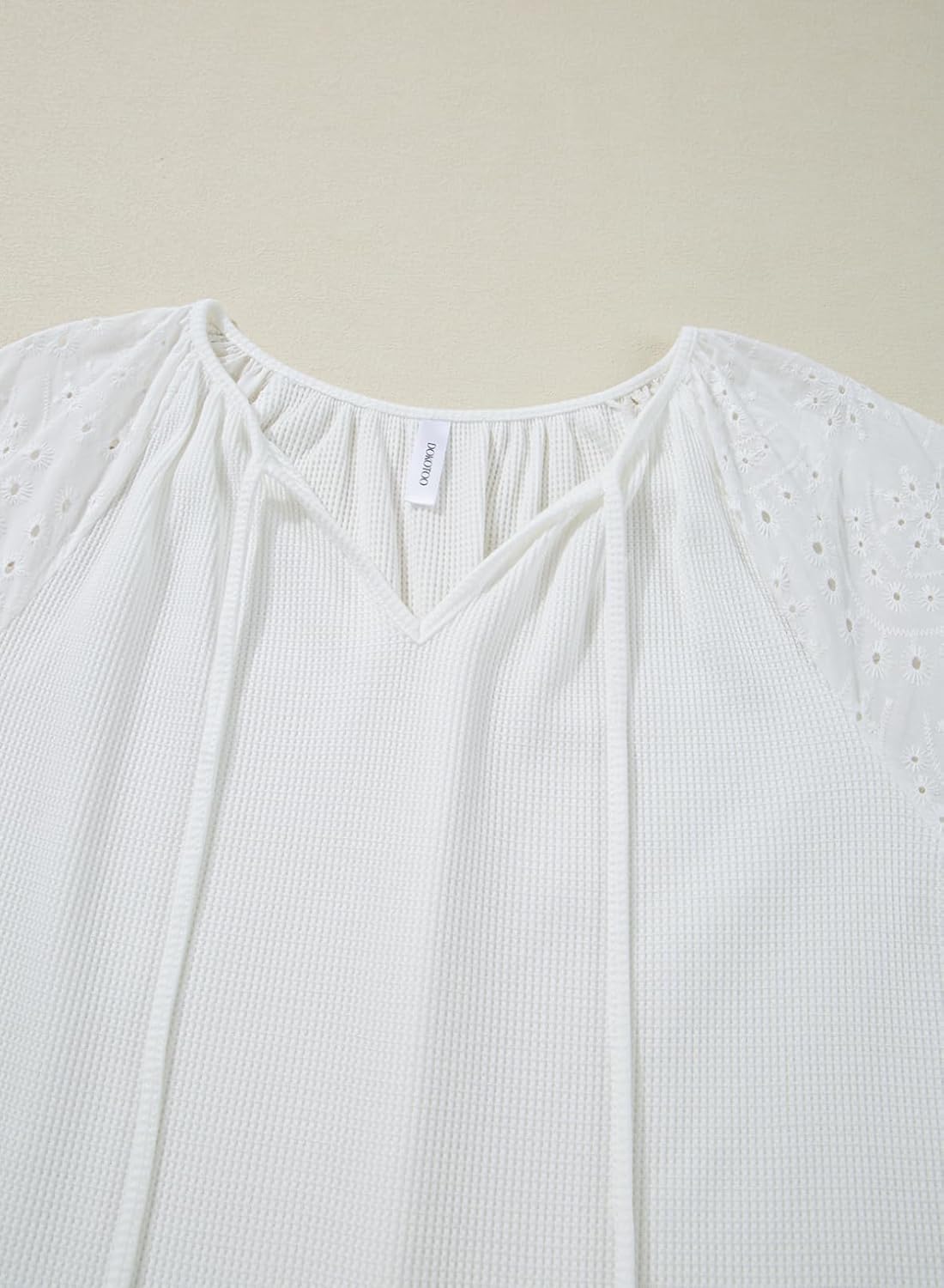 Dokotoo Tops for Women Trendy Spring Summer 2025 Dressy Casual V Neck Blouses Cute Babydoll Tops 3/4 Sleeve Shirts