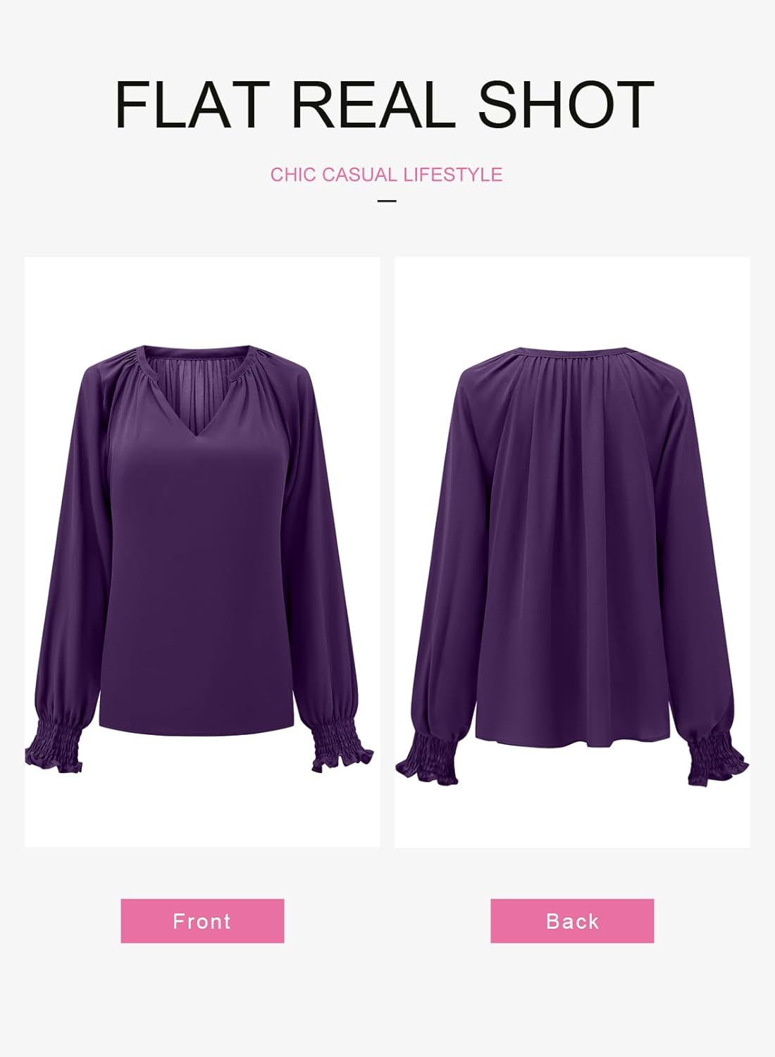Dokotoo Womens Tops Long Sleeve Chiffon Blouses for Women Dressy Casual 11