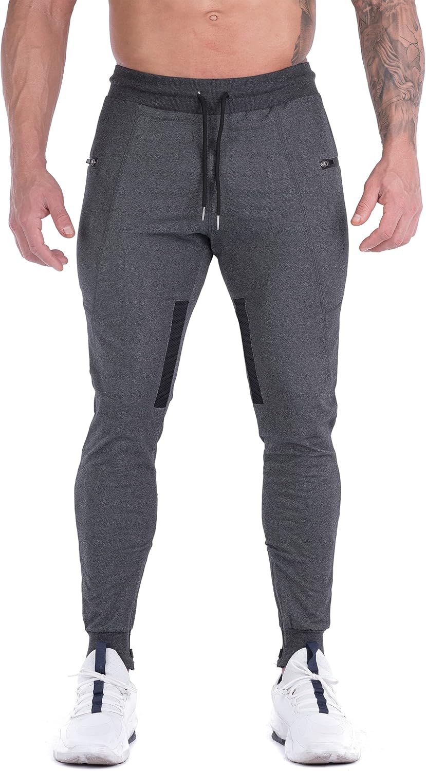 FIRSTGYM Mens Joggers Sweatpants Slim Fit Workout Training Thigh Mesh Gym Jogger Pants with Zipper Pockets