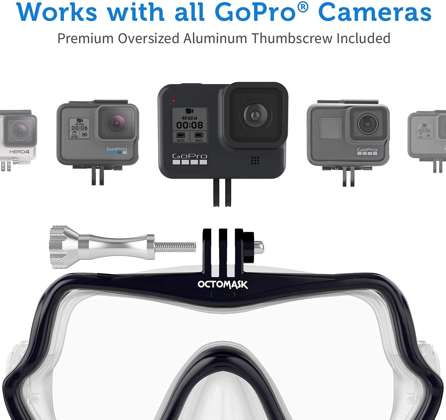 Frameless Scuba Mask w/Mount for all GoPro Hero Cameras for Scuba Diving, Snorkeling, Freediving