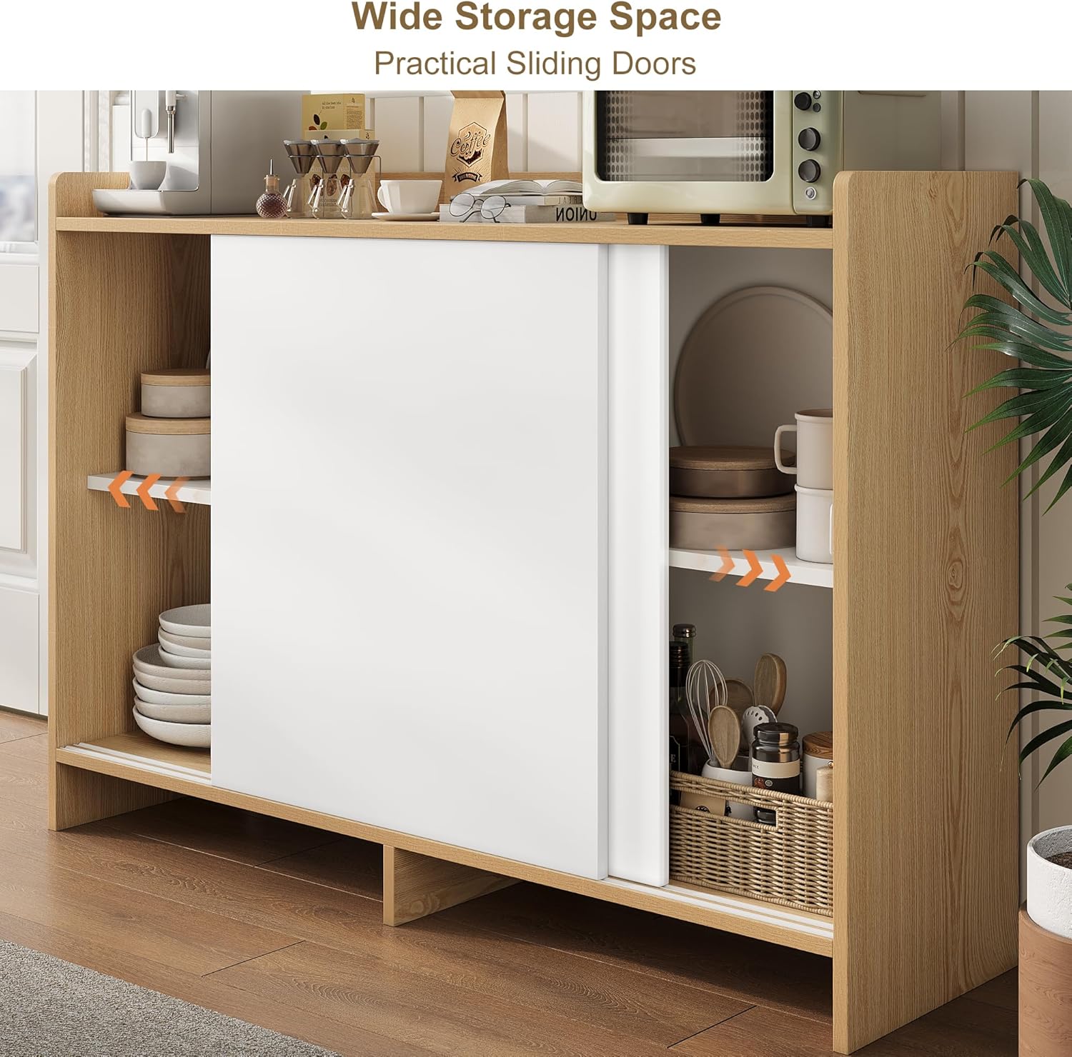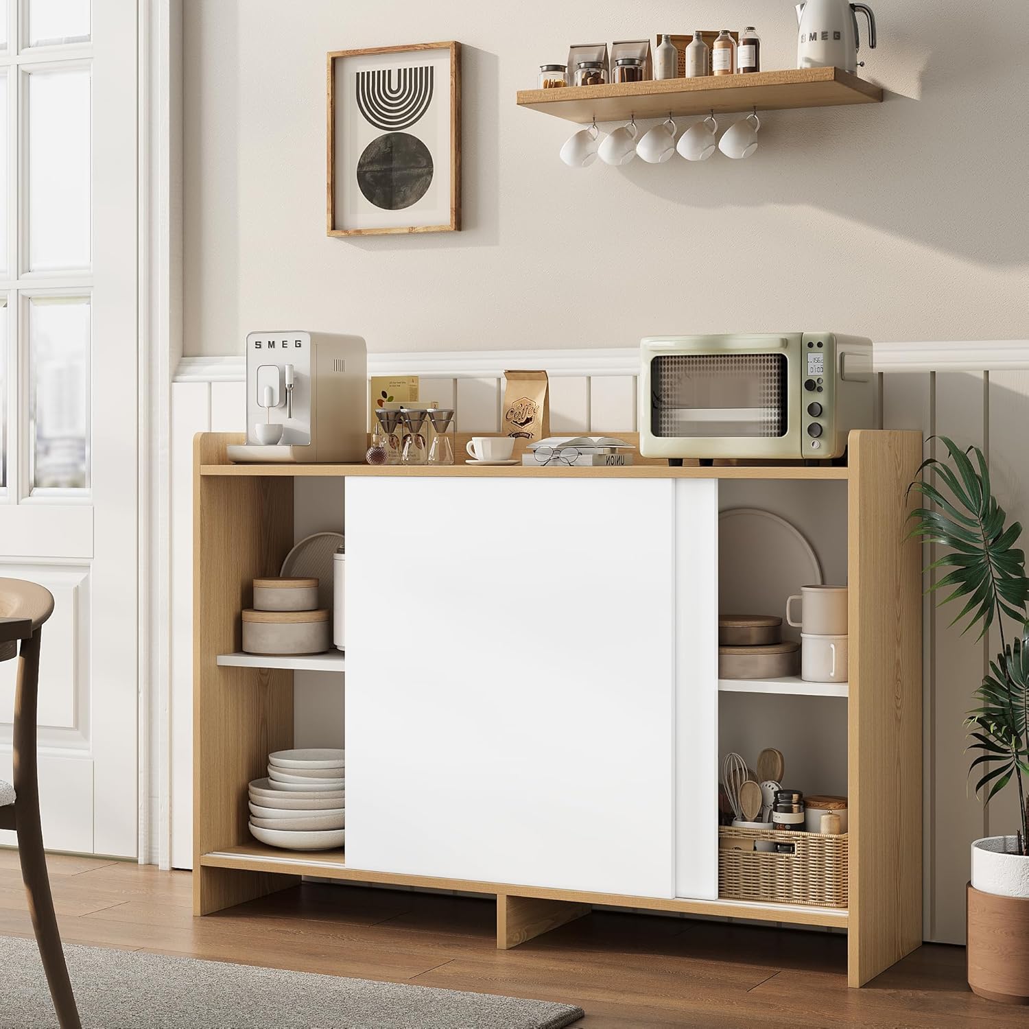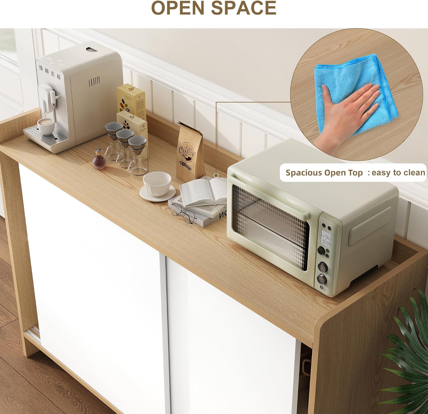 HIFIT Kitchen Buffet Sideboard Cabinet with Storage, 43″ Farmhouse Modern Kitchen Storage Cabinet with Sliding Doors and Shelf, Narrow Bar Cabinet for Dining Living Room Entryway Small Space,White-Oak