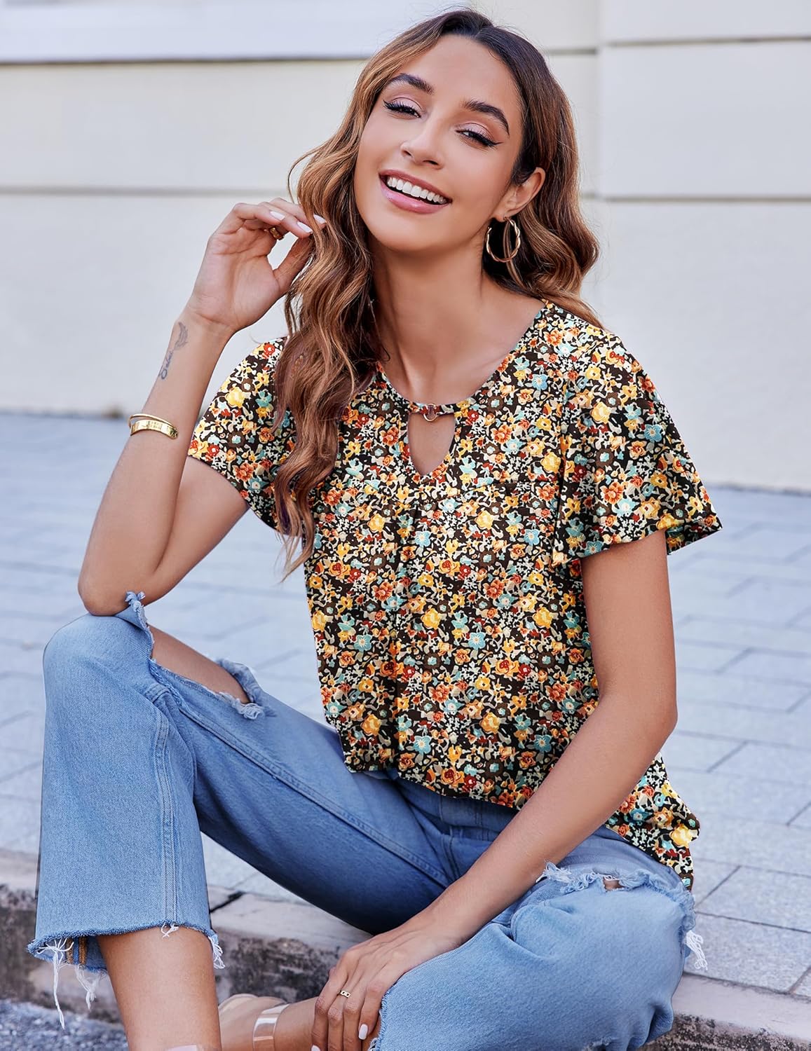 Summer Dressy Casual Tunic Shirts Women’s Summer Tunic Tops Short Sleeve Flowy Blouses