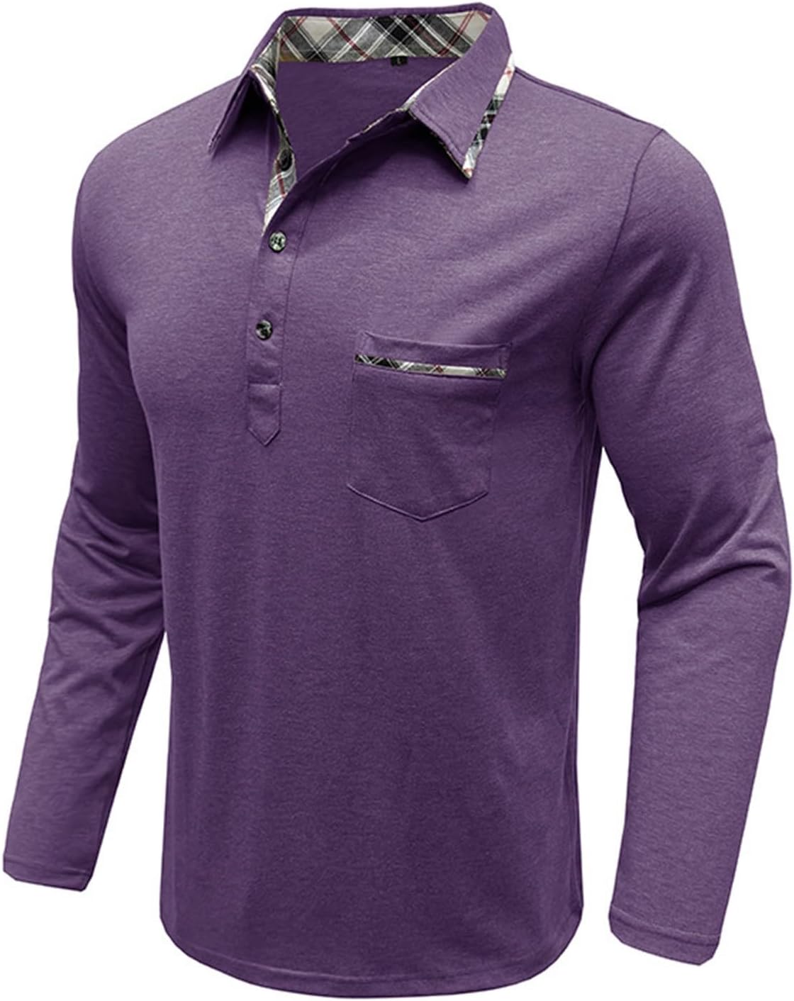 HUCHPI Men’s Shirts Casual Fall Polo Shirts Classic Basic Button T-Shirt Lightweight Cotton Loose Fit Golf Tops