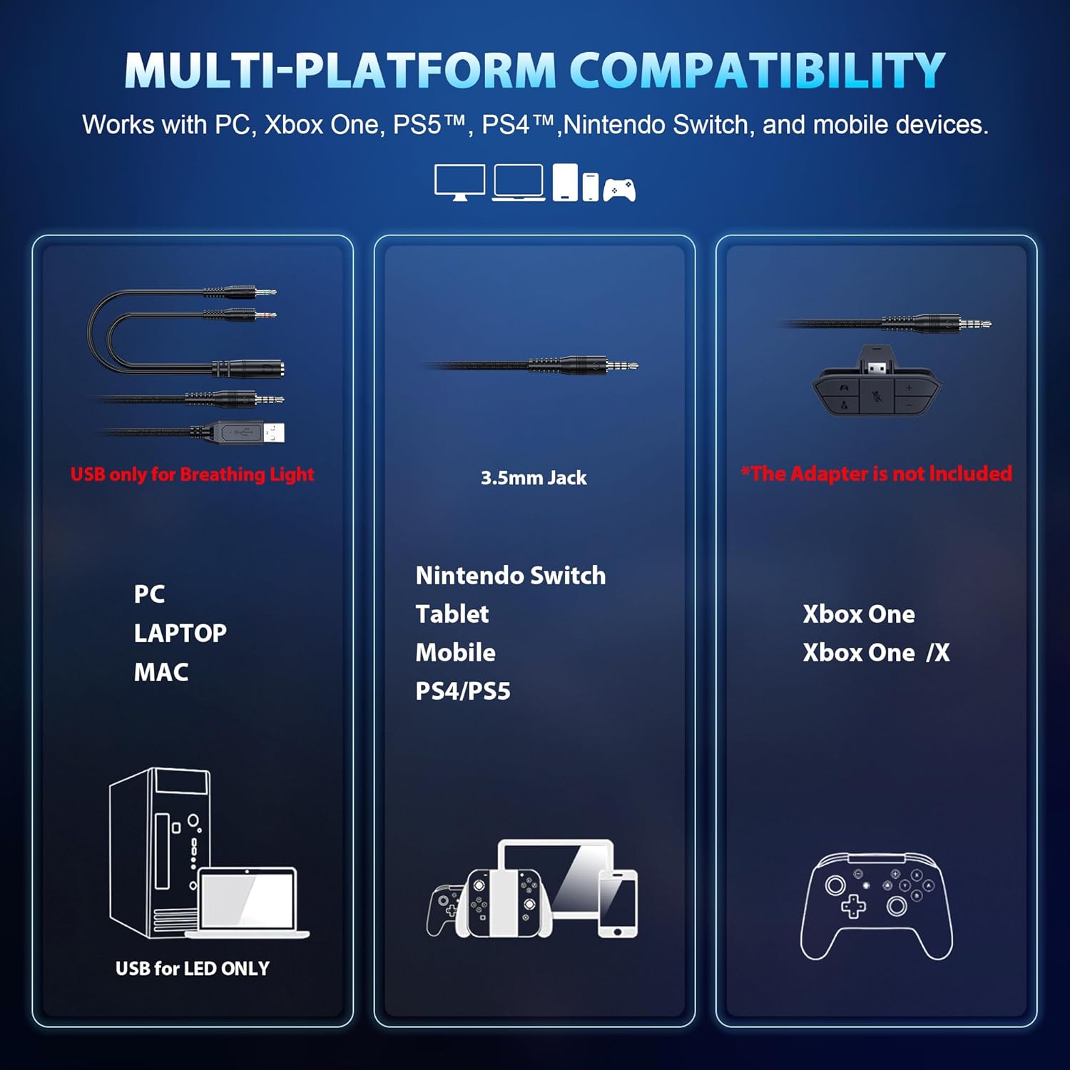 Universal Compatibility: Designed for gamers, this Xbox gaming headset is compatible with PS5, PS4, Xbox Series X/S, Xbox One, PC, and Nintendo Switch. Enjoy seamless connectivity across all your devices, ensuring you can game without limits. Note: An adapter may be required for older Xbox controllers (not included)