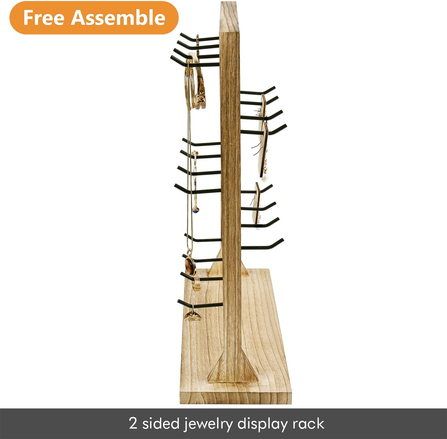 Each wooden jewelry rack comes with 20 removable metal hooks for storing earring cards, keychains, necklaces, bracelets, rings, and so on.