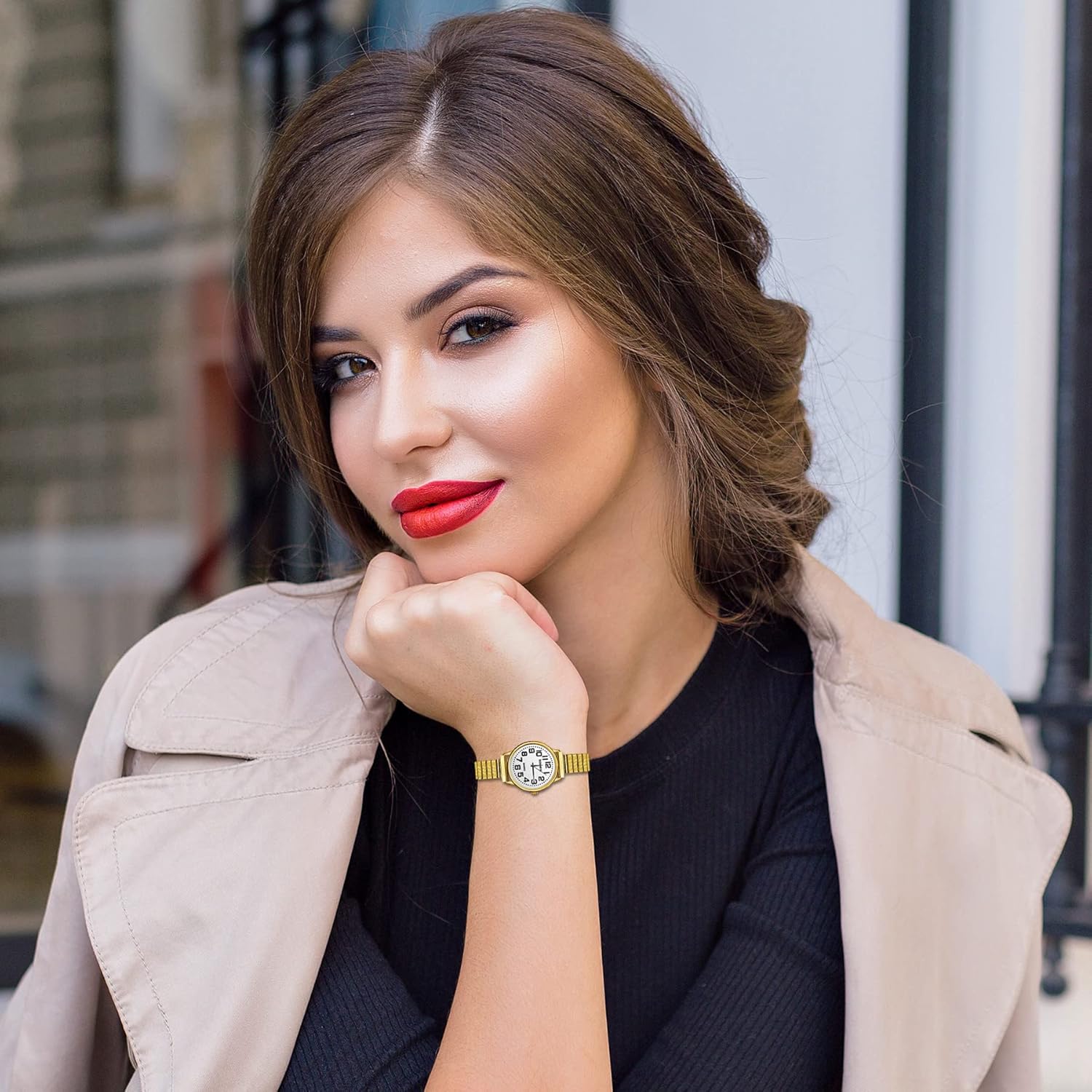 JewelryWe Women’s Easy Reader Analog Watch Gold Silver Plated Elastic Band Wristwatch