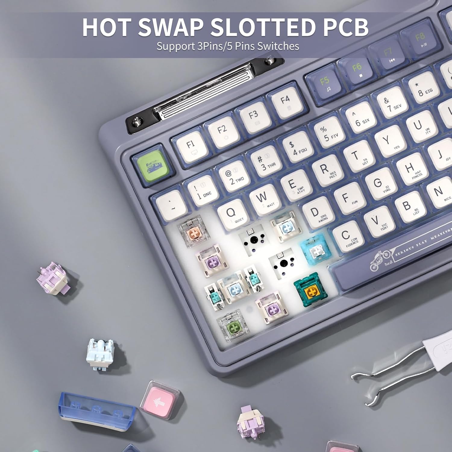 Premium Custom Hot Swap Switches – The pre-lubed moment linear switches with north-facing transparent light diffusers provide a silky smooth typing experience, an amazing out-of-the-box crisp typing sound, and a brighter RGB backlight effect that is friendly to RGB enthusiasts. The hot swappable PCB of this gasket mounted keyboard is compatible with 3Pin or 5Pin Switches.