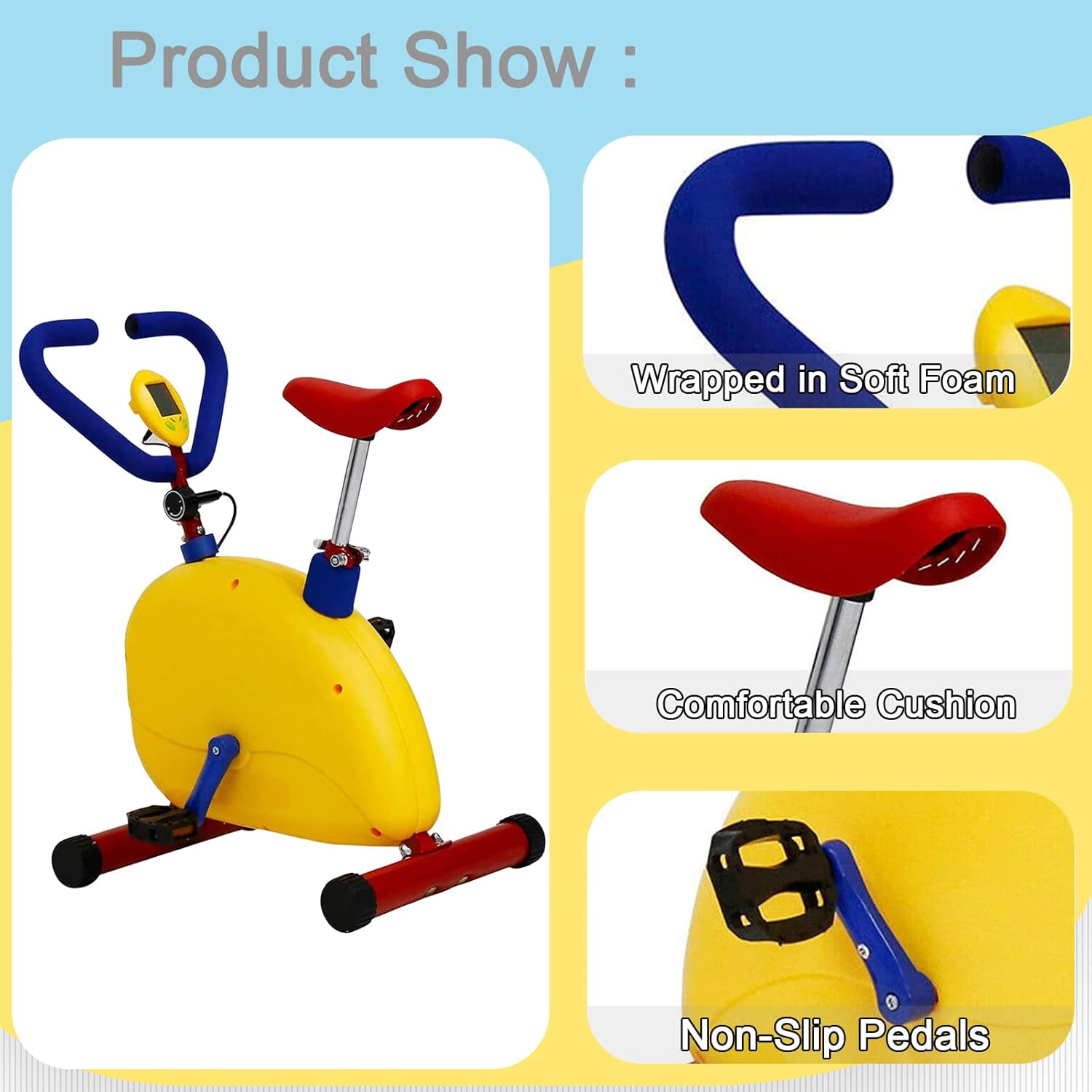 Kids Fitness Exercise Equipment, Adjustable Fitness Exercise Bike, Kids Stationary Bike with High Elastic Seat, Children’s Exercise Bike for Kids Workout Equipment Bike for Ages 3-12 Year Old