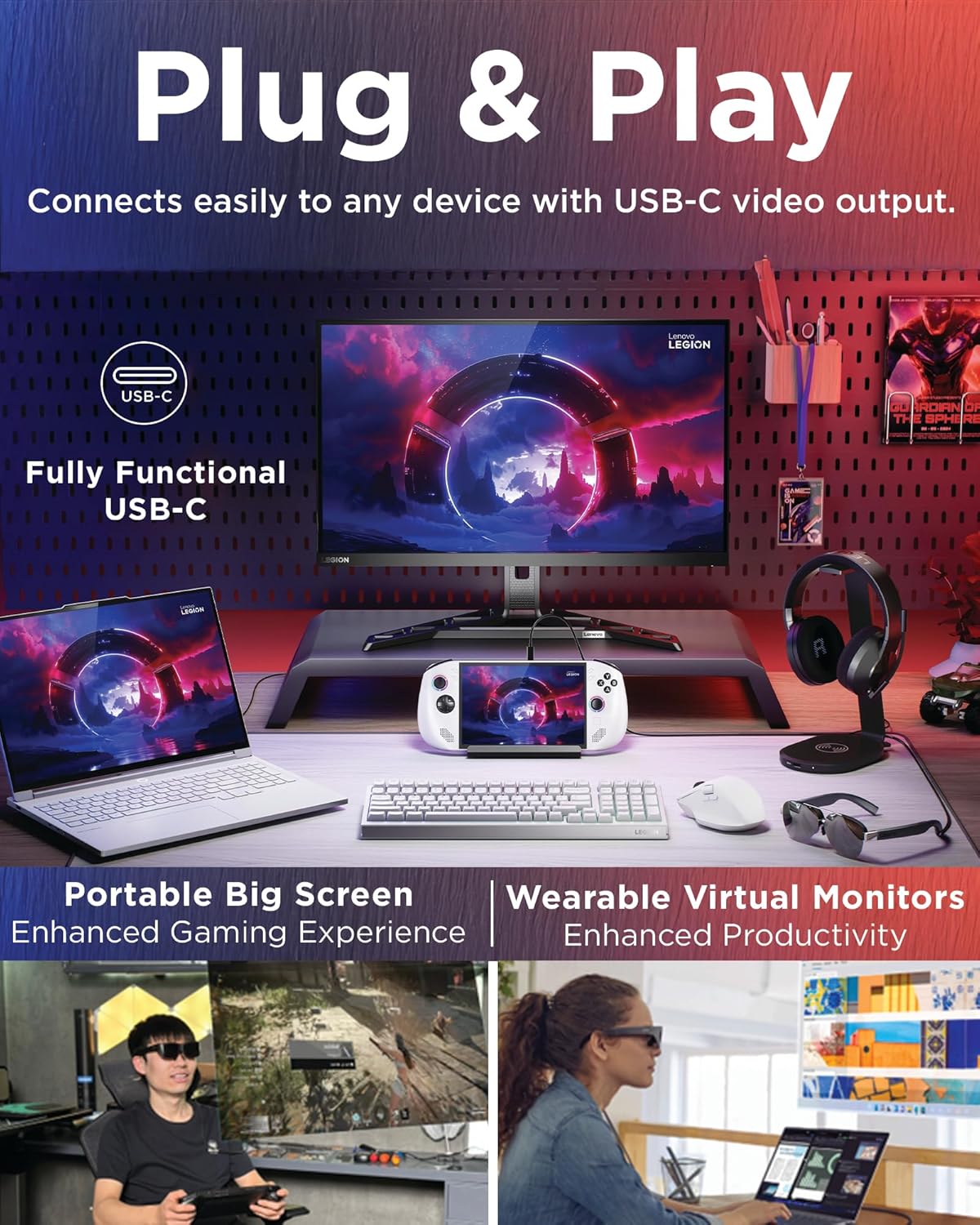 Plug-and-Play Instant Setup: Simply plug the Legion Glasses into any device with a full-function USB-C port for an instant, seamless connection. No need for custom software—just connect and enjoy your content like a traditional monitor