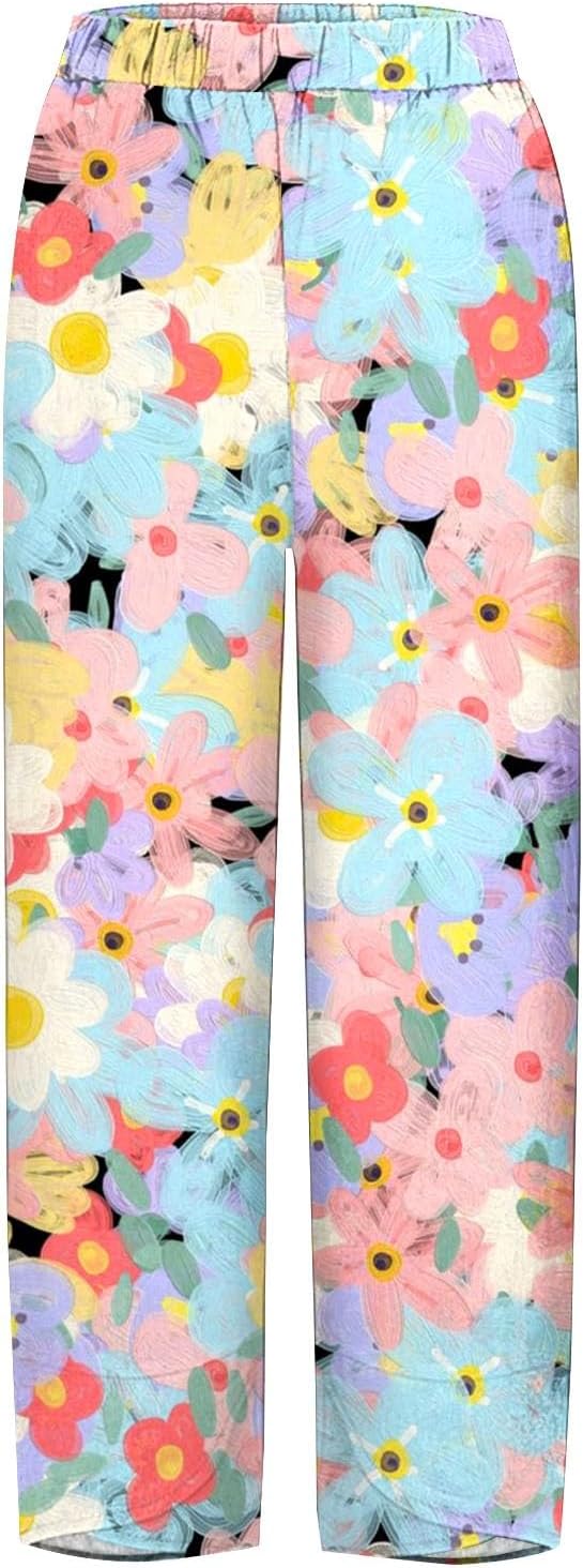 Linen Pants for Women Summer 2025 Breathable Capri Pants with Pockets Cropped High Waisted Comfy Baggy Trousers