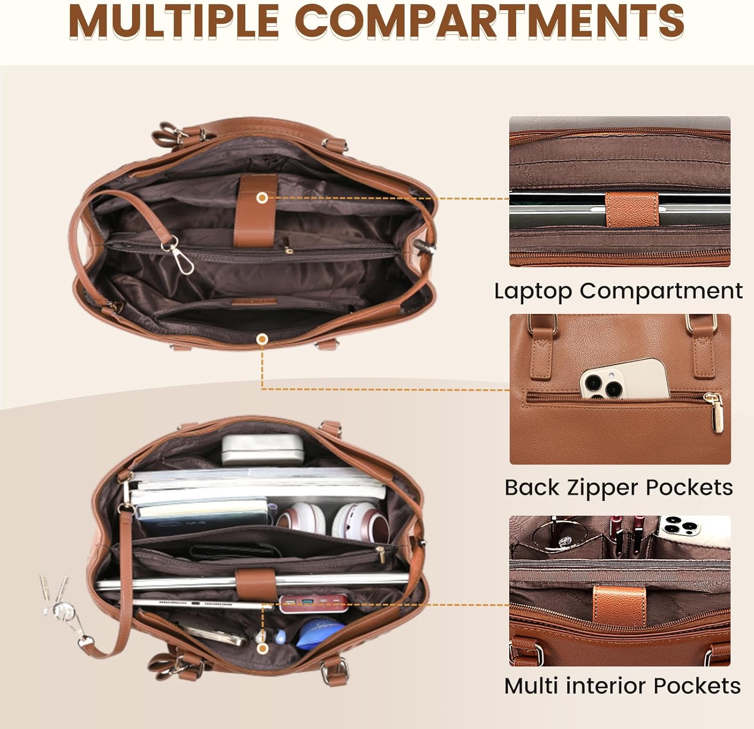 Professional Womens Laptop Bag: The computer bag is made of durable, high-quality water-resistant and scratch-resistant PU leather. The metal feet base protects your laptop tote bag from damage, and the reinforced stitching at each stress point enhances the durability of this womens work bag.