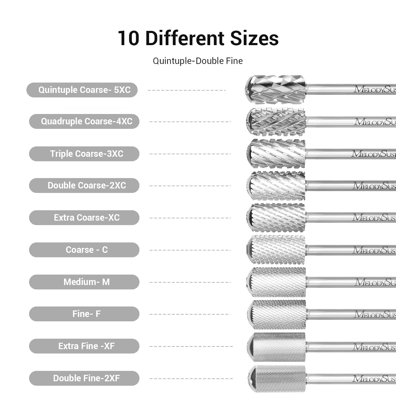 MelodySusie Safety Nail Drill Bits, 3/32” Smooth Round Top Large Barrel Carbide Bits, Suitable for Manicure Pedicure Cuticle Gel Polishing, Beginners Bits, Silver, Series Bit-S, Coarse