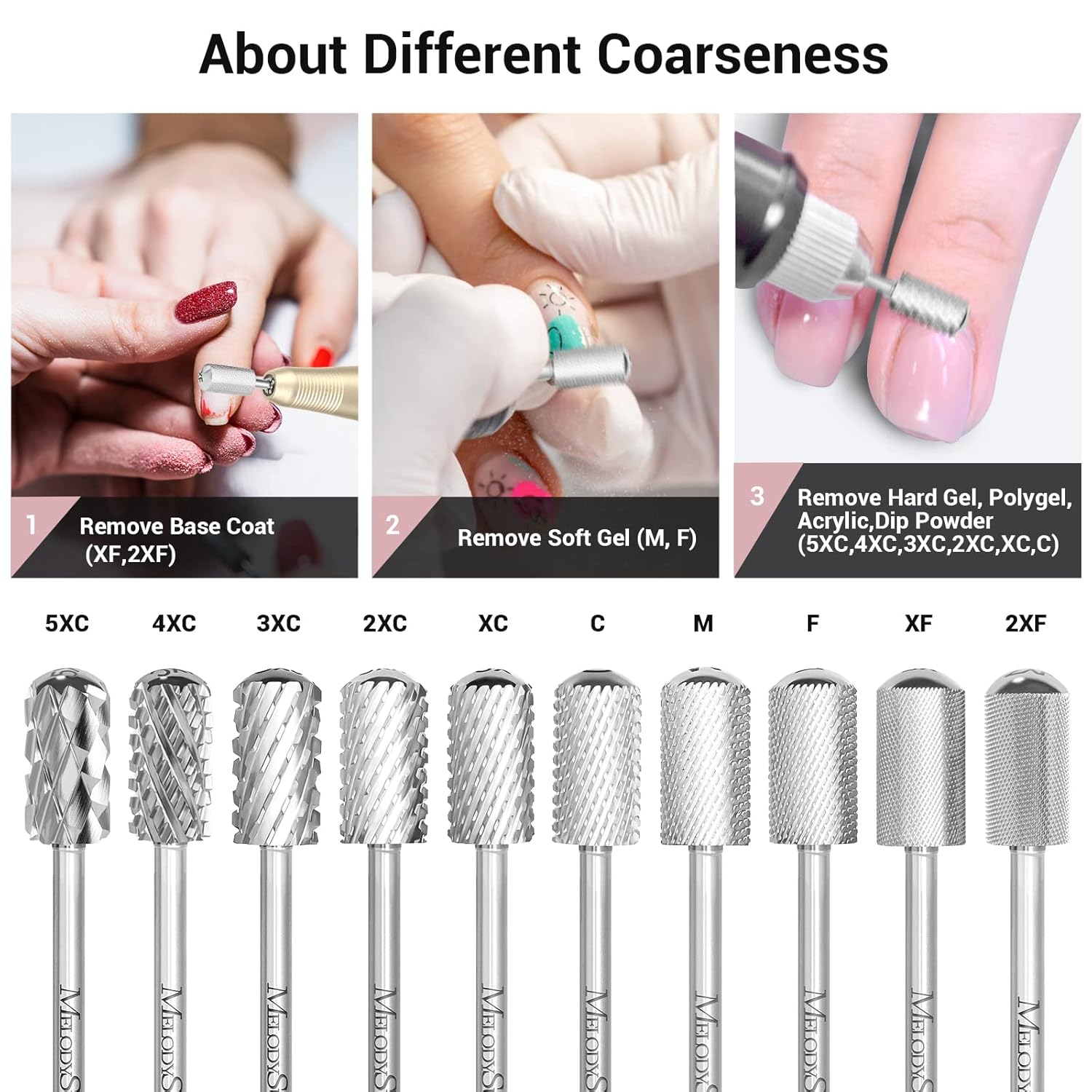 Professional Nail Drill Bits: Made of the hardest YG6X carbide tungsten material, this high-precision machining nail bit comes with excellent heat dissipation, low vibration, low noise, and hard-wearing features. Fast to remove acrylic nails, dip powder, polygel, and hard gel nails.