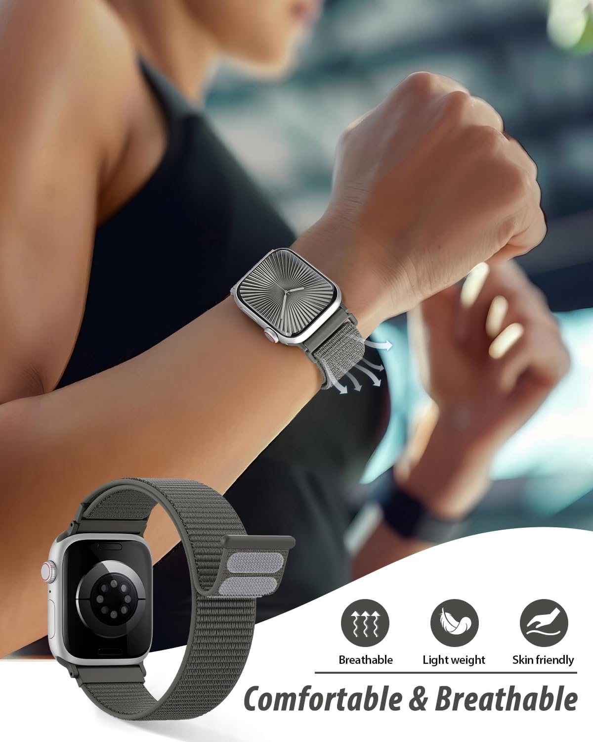 [Easy to Wear]: Our iWatch bands for women men feature a magic tape closure for easy, one-handed length adjustments, ensuring a snug fit during workouts and outdoor adventures. Durable, breathable, and comfortable, they keep your smartwatch securely in place no matter how active you get