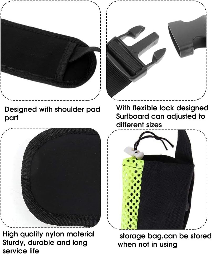 [HIGH-QUALITY NYLON MATERIAL] Constructed from nylon material for long-lasting use, providing sturdy support for your surfboard.