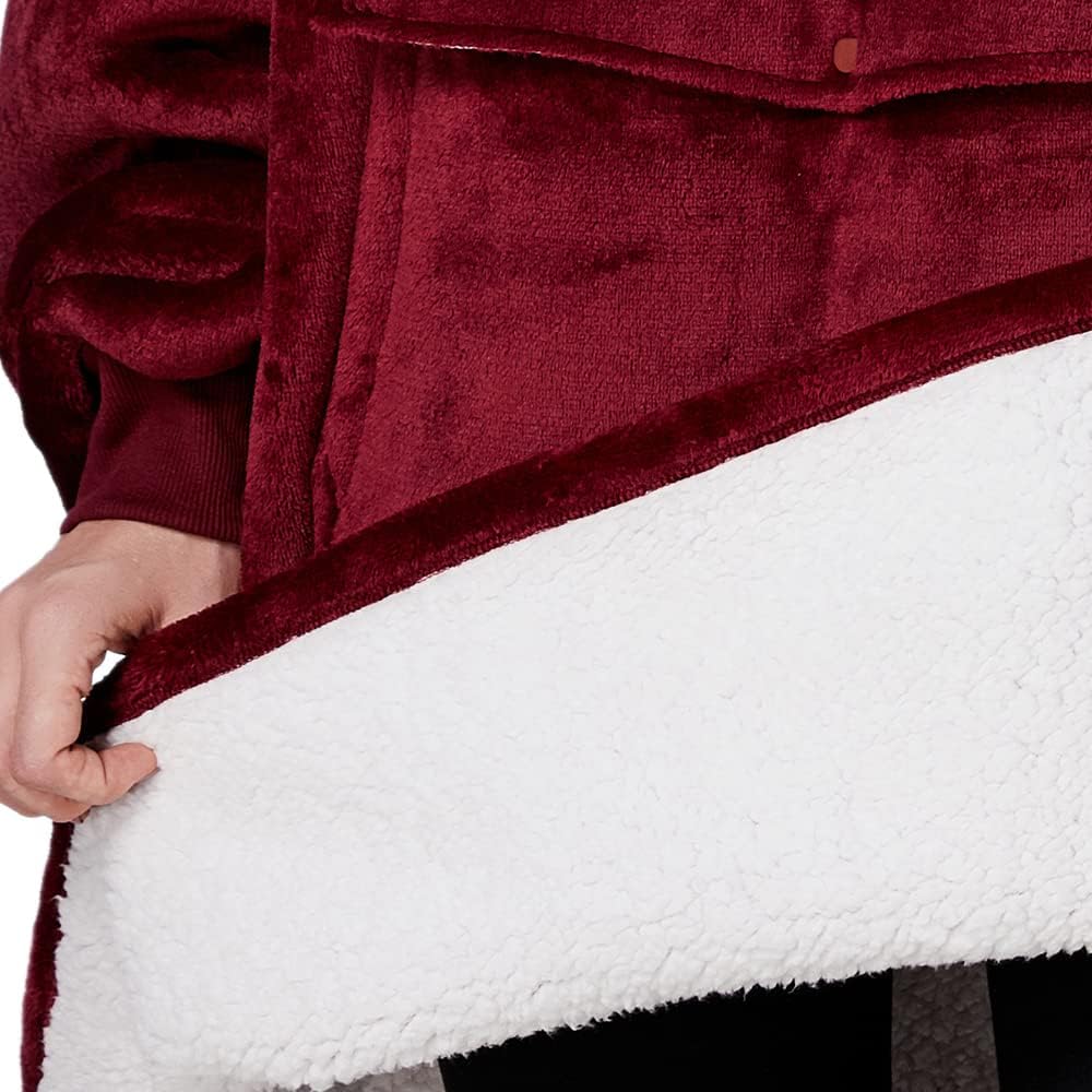 Qeils Oversized Wearable Blanket Hoodie, Comfy Sherpa Sweatshirt Pullover Jacket (Large Pocket, Burgundy, Adult)