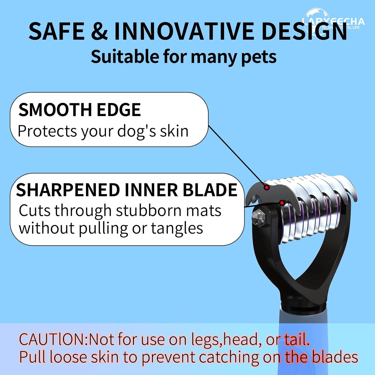 Specialized in pet hair health:The Dog Detangling Brush removes mats, tangles, knots and loose hair easily and safely, long hair, multiple hairs can be easily detangled,LARYEECHA dematting and deshedding tool gently removes loose hair and eliminates tangles, knots, dander, and trapped dirt. A safe and effective dog brush or cat grooming brush solution for pets with thick or double coats.