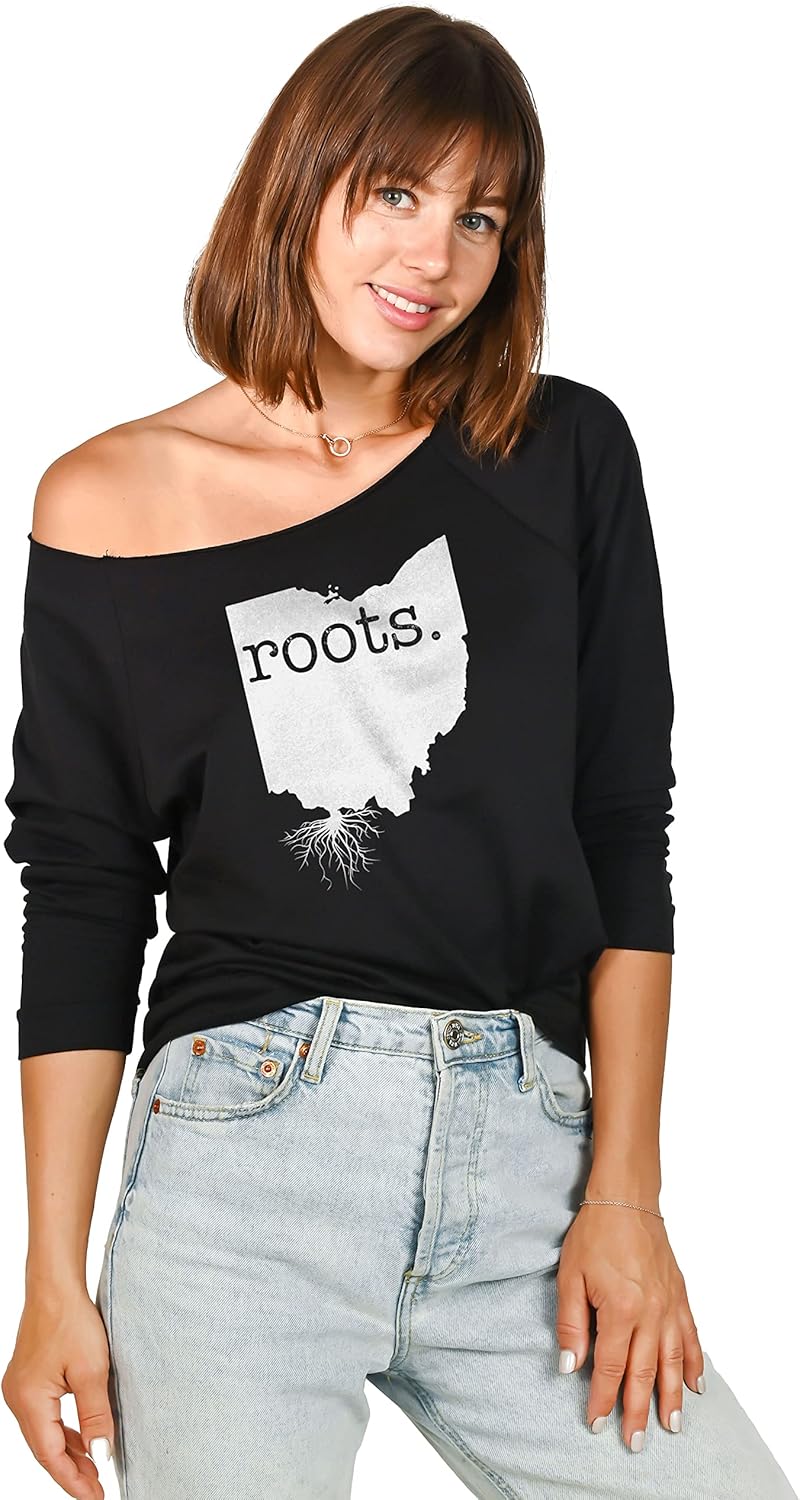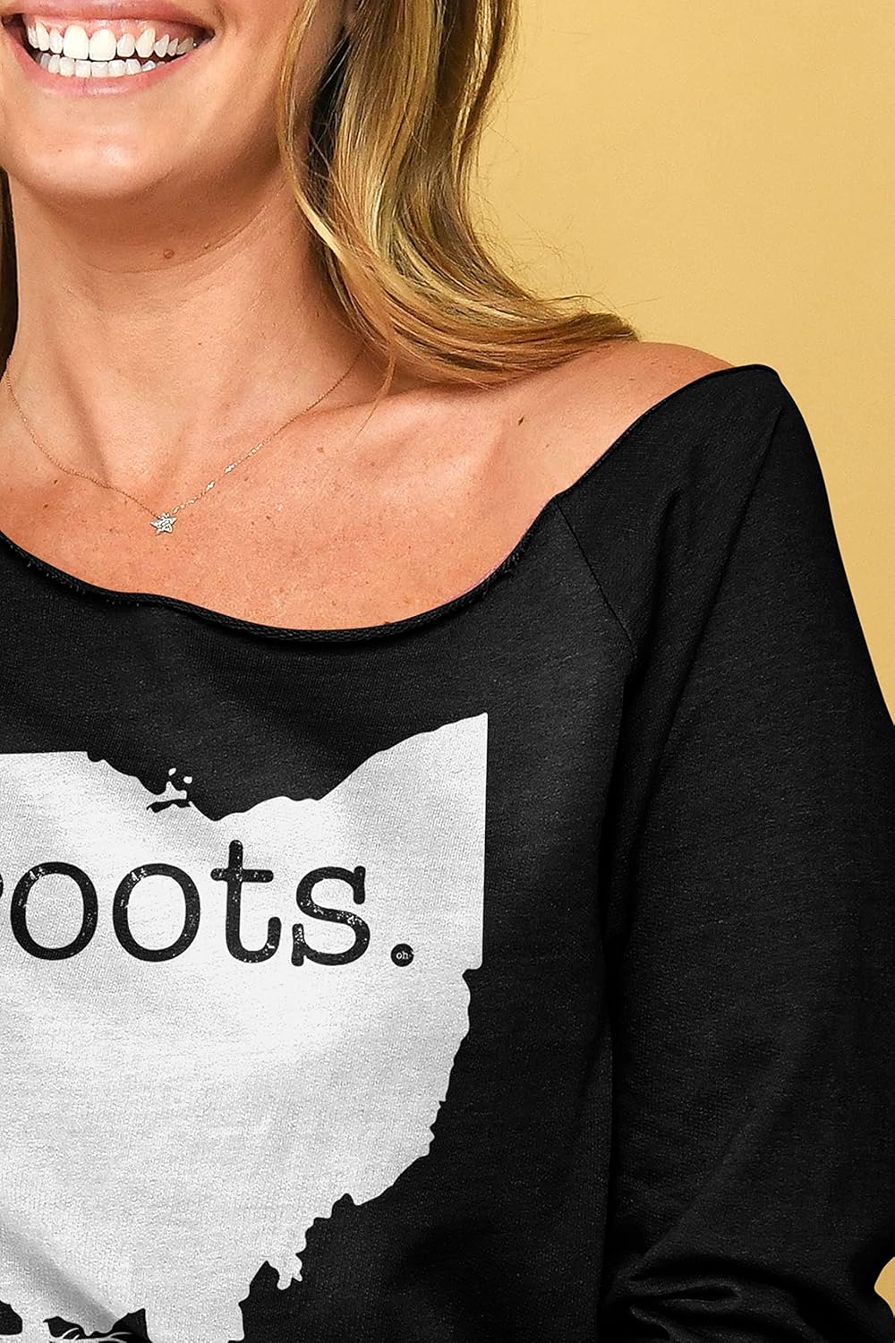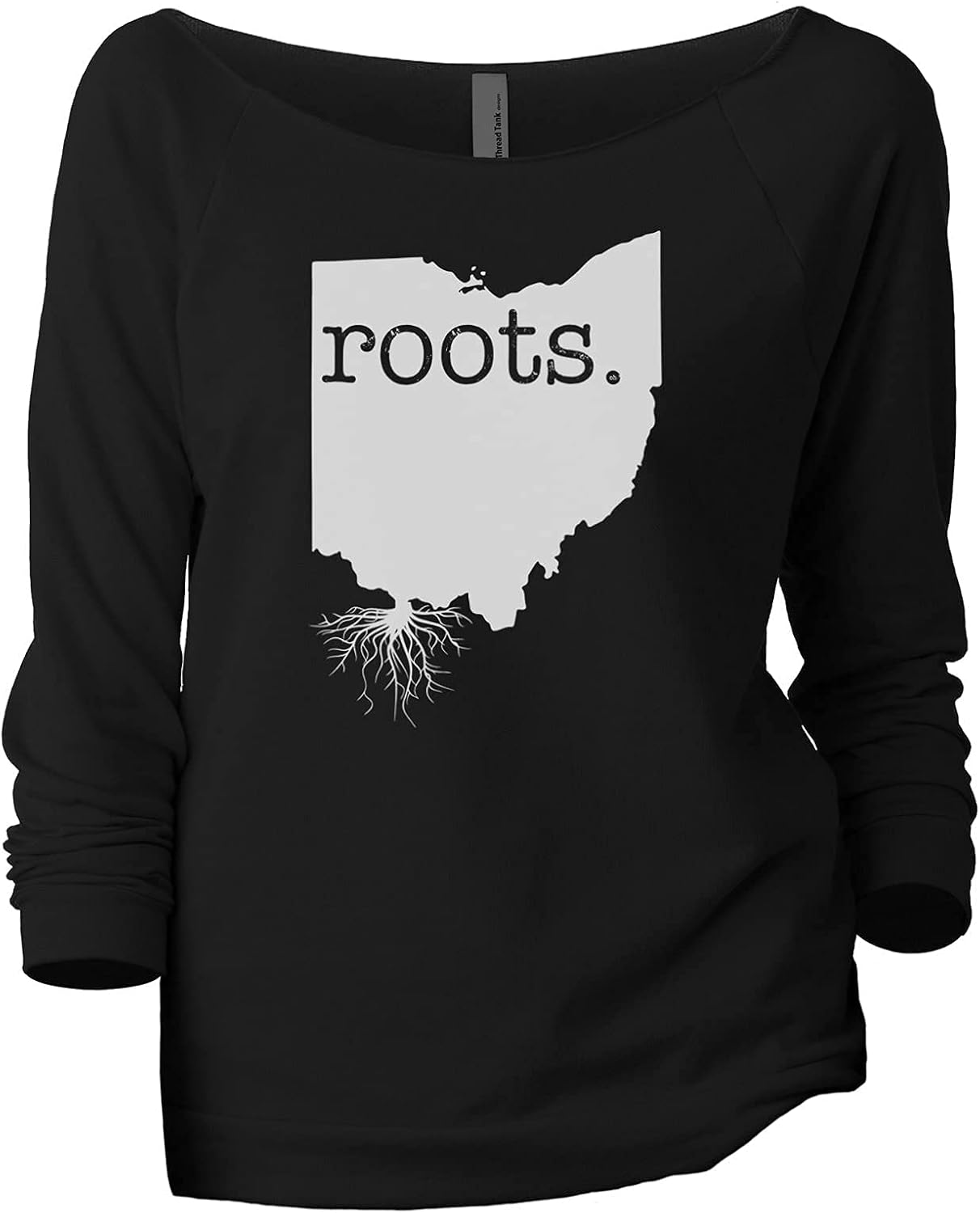 Thread Tank Home Roots State Ohio OH Women’s Fashion Slouchy 3/4 Sleeves Raglan Lightweight Sweatshirt