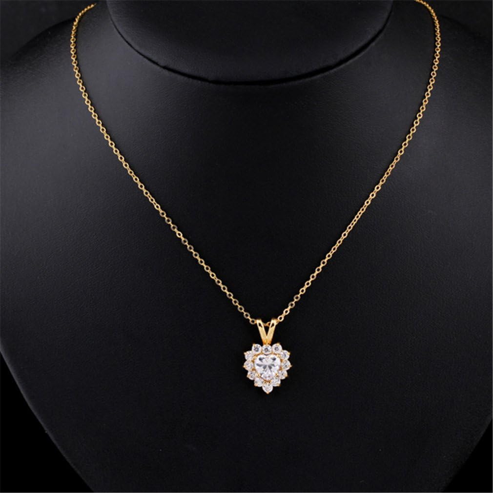 YAZILIND 18K Gold Plated Chain Link Necklace White Zircon Heart Pendant Jewelry