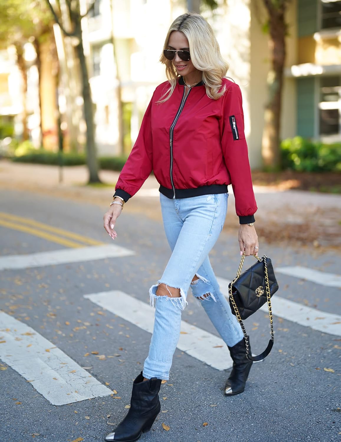 Zeagoo Women’s Bomber Jacket Casual Coat Zip Up Outerwear Windbreaker with Pockets S-XXL
