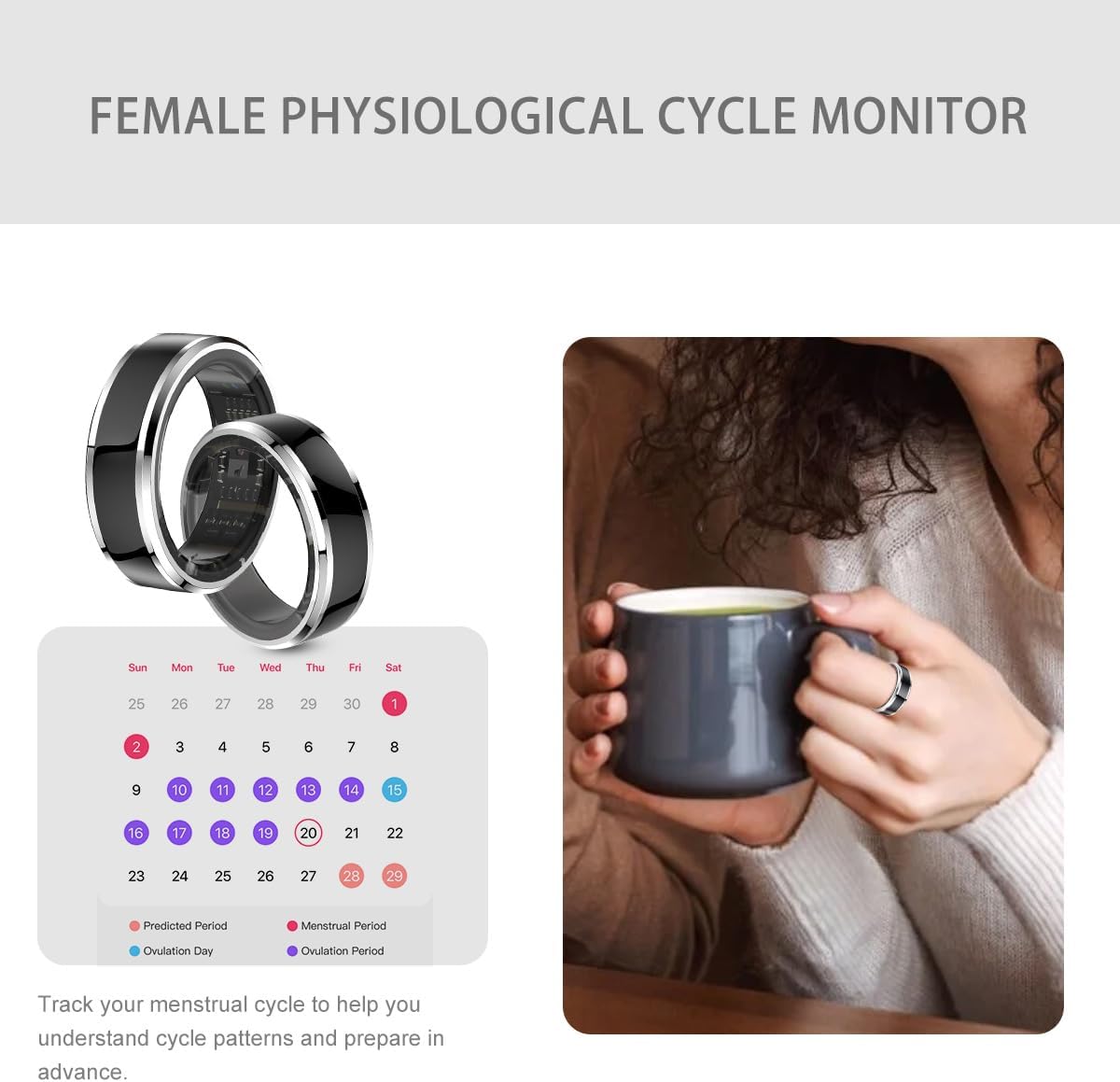 FITNESS SMART RING : A health future is at your fingertips,after wearing the ring,the ring will dynamically collect heart rate every 15 minutes,and also support pressure and female physiological cycle monitoring,dynamic analysis